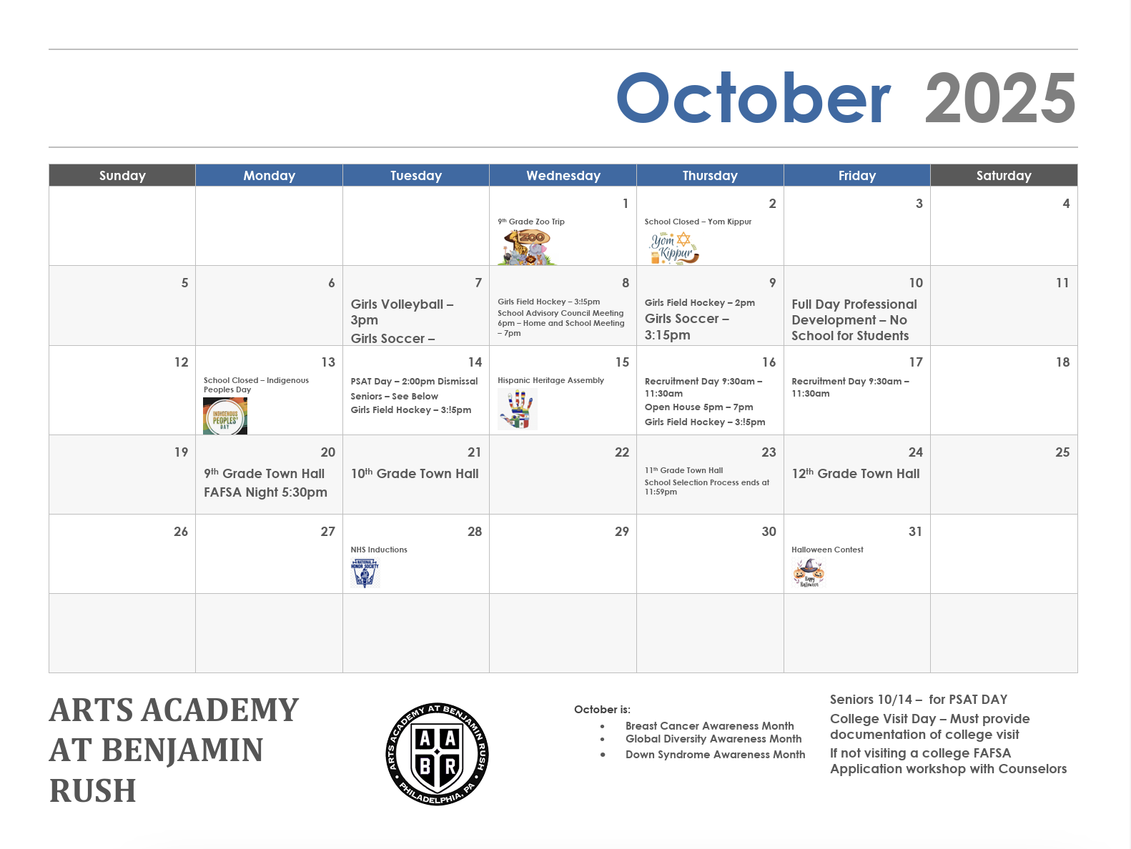 Rush Monthly Calendar